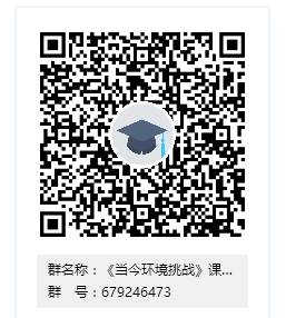 为方便通知和交流,学院建立了课程QQ群,请选择《当今环境挑战》课程的同学加入QQ群:679246473,入群请实名备注:学院-专业年级-姓名。