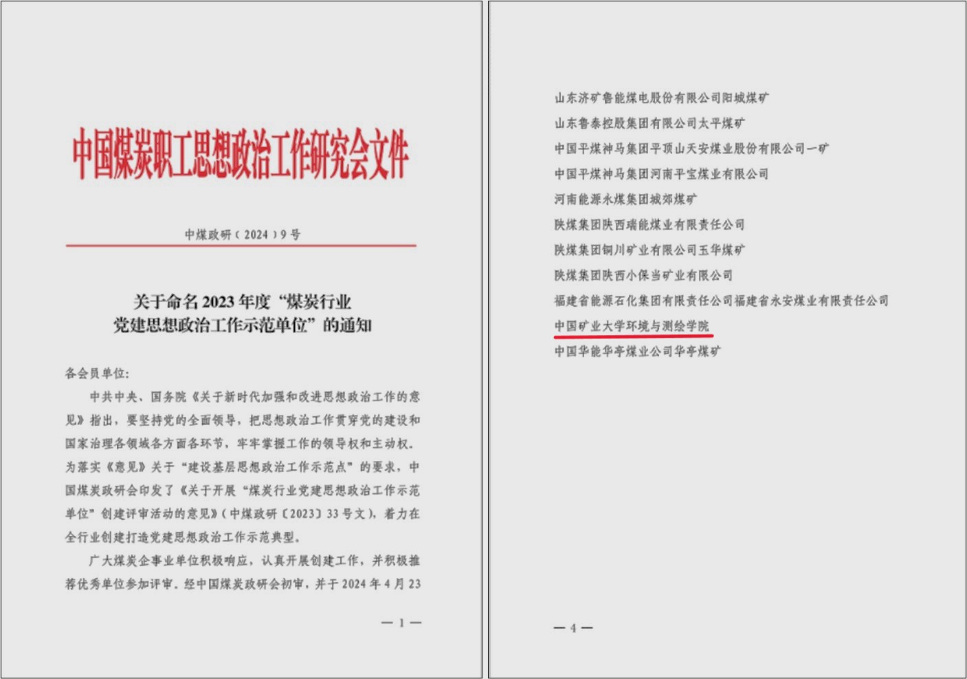 近日,中国煤炭职工思想政治工作研究会下发文件,我院被授予2023年度“煤炭行业思想政治工作示范单位”称号。