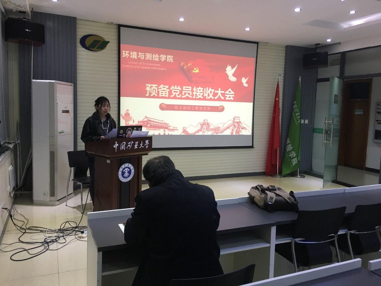 3月18日晚7点,我院硕士测绘工程党支部于学院楼A512会议室召开了预备党员接收大会,对段文再和许怡两位同志的情况进行了讨论。本次活动由党支部副书记陈丁同志主持,支部31名党员参加,学院党委委员、行政副院长郭东同志莅临指导。
