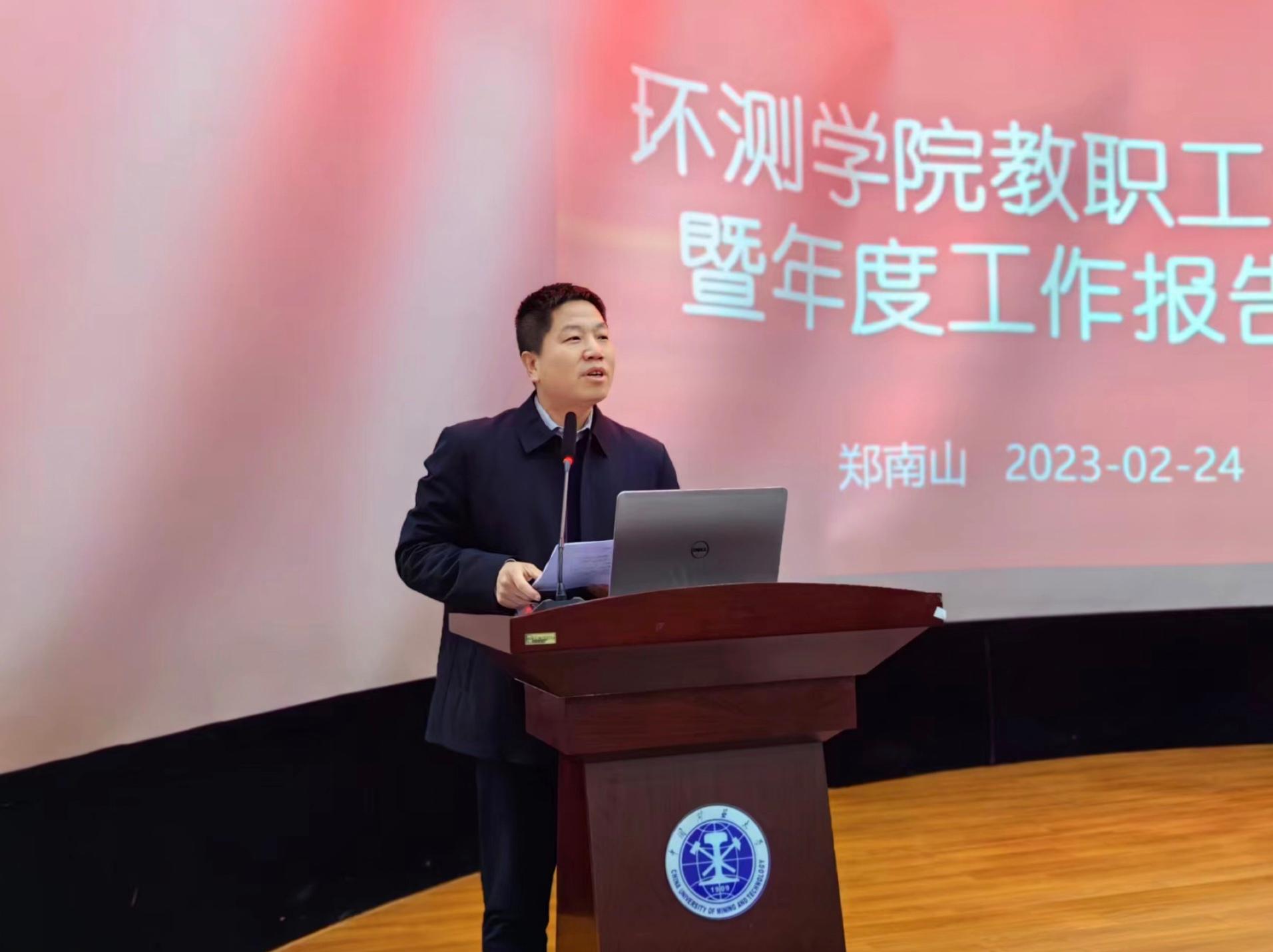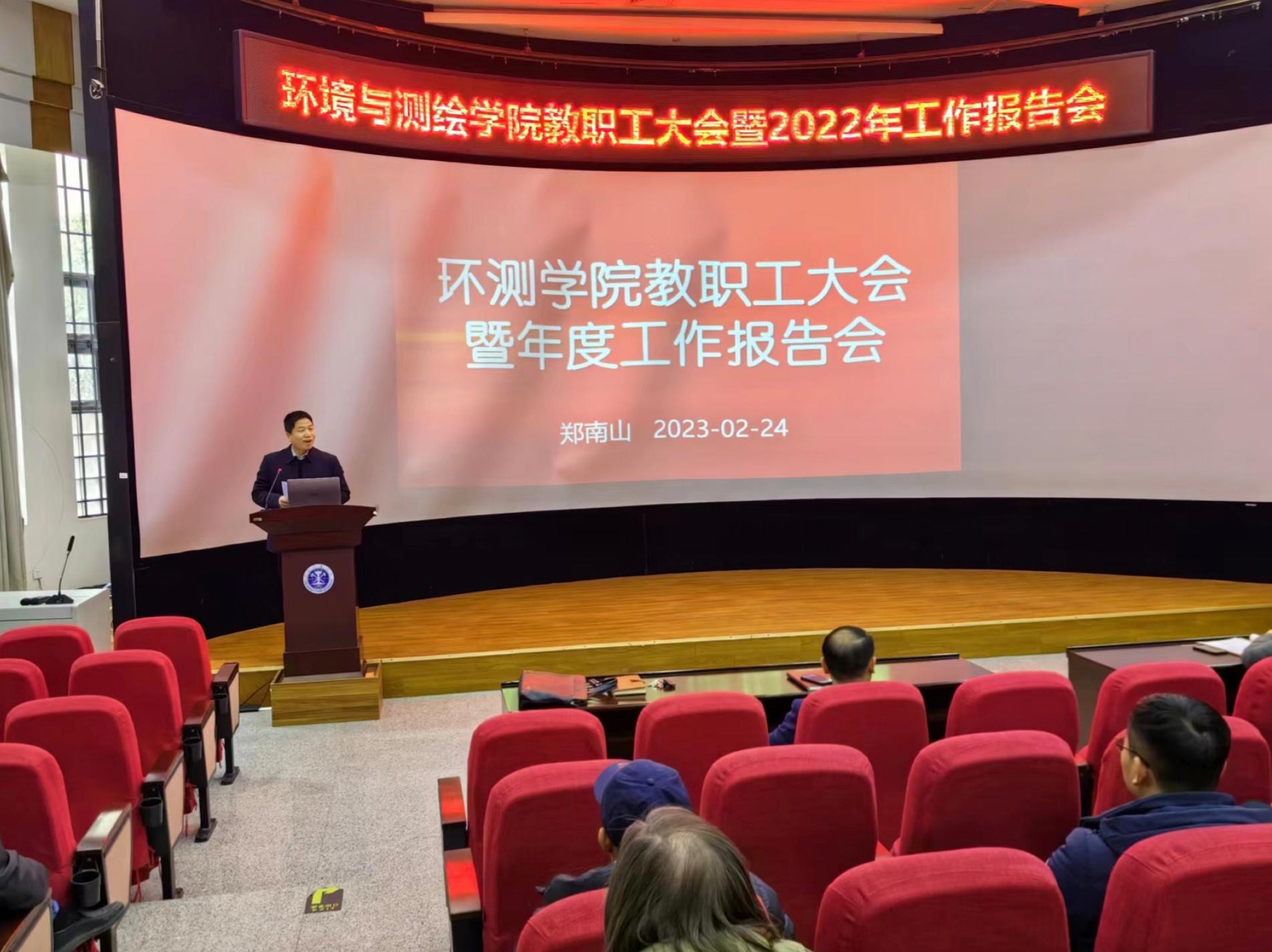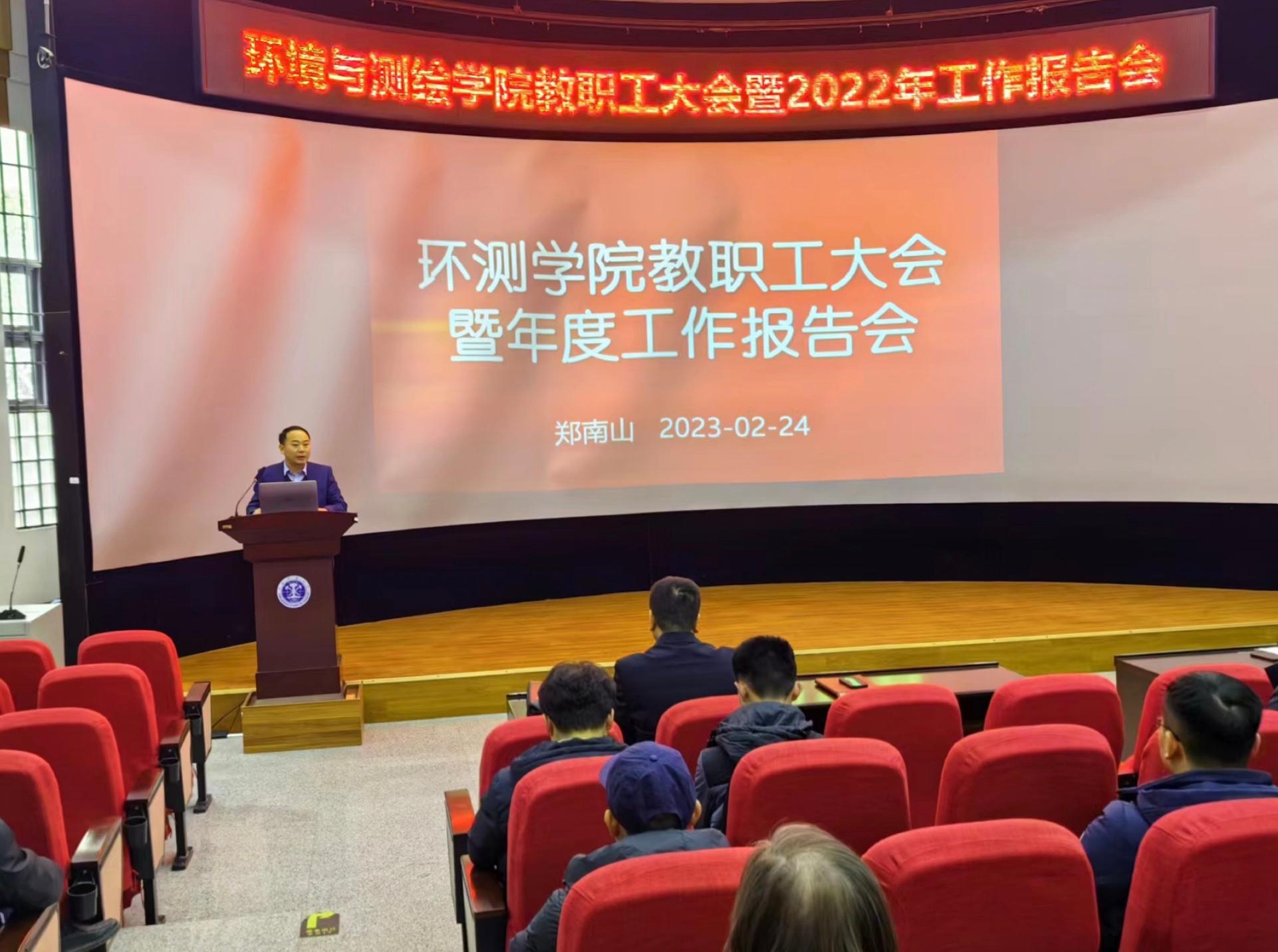 2月24日下午,我院教职工大会暨2022年度工作总结大会在环测楼B109举行,学院党政领导及全体教职员工出席会议。本次会议由党委书记王守刚主持。