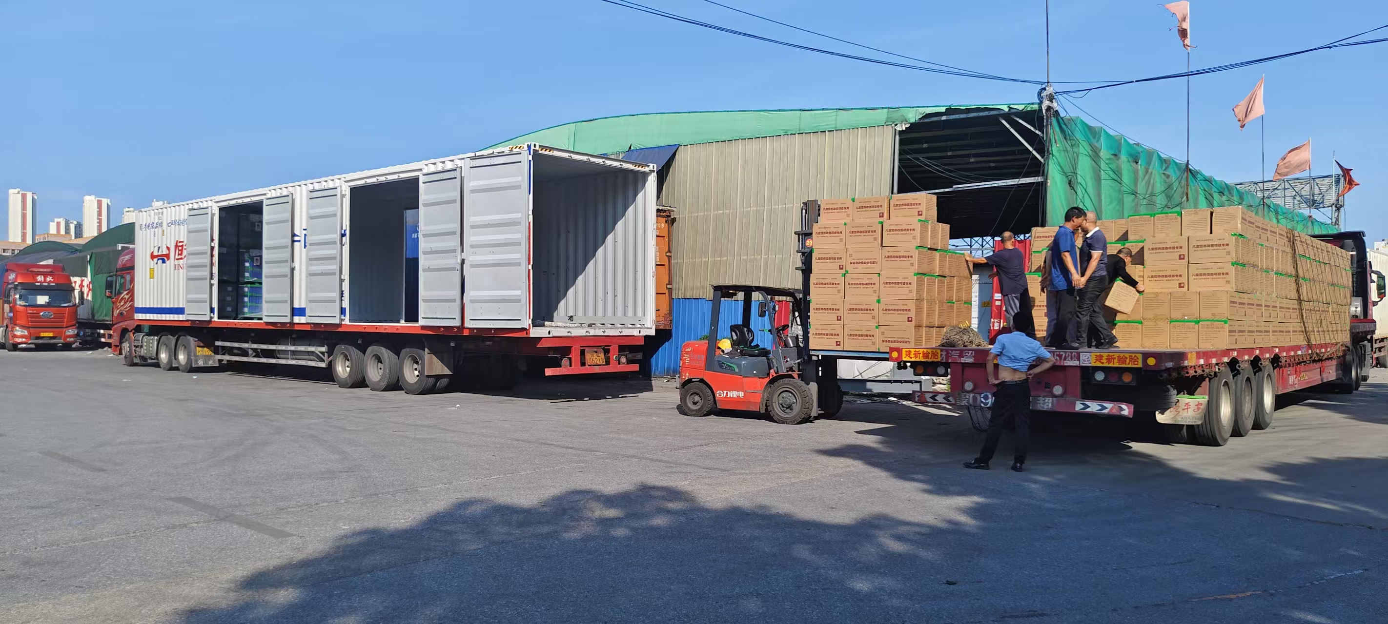 7月23日下午,吴磊同学来到了运输基地,映入眼帘的是一排排的厂房,这些厂房都是以物流运输的起始站和终止站来进行区分的。在一众厂房的外面,停泊着一辆辆的大型卡车。经了解,这些卡车几乎都是用来装箱的。走进这些厂房的内部,可以看见大大小小的货物箱。在炎炎烈日下,有几位工人师傅正在将货物箱装上卡车。