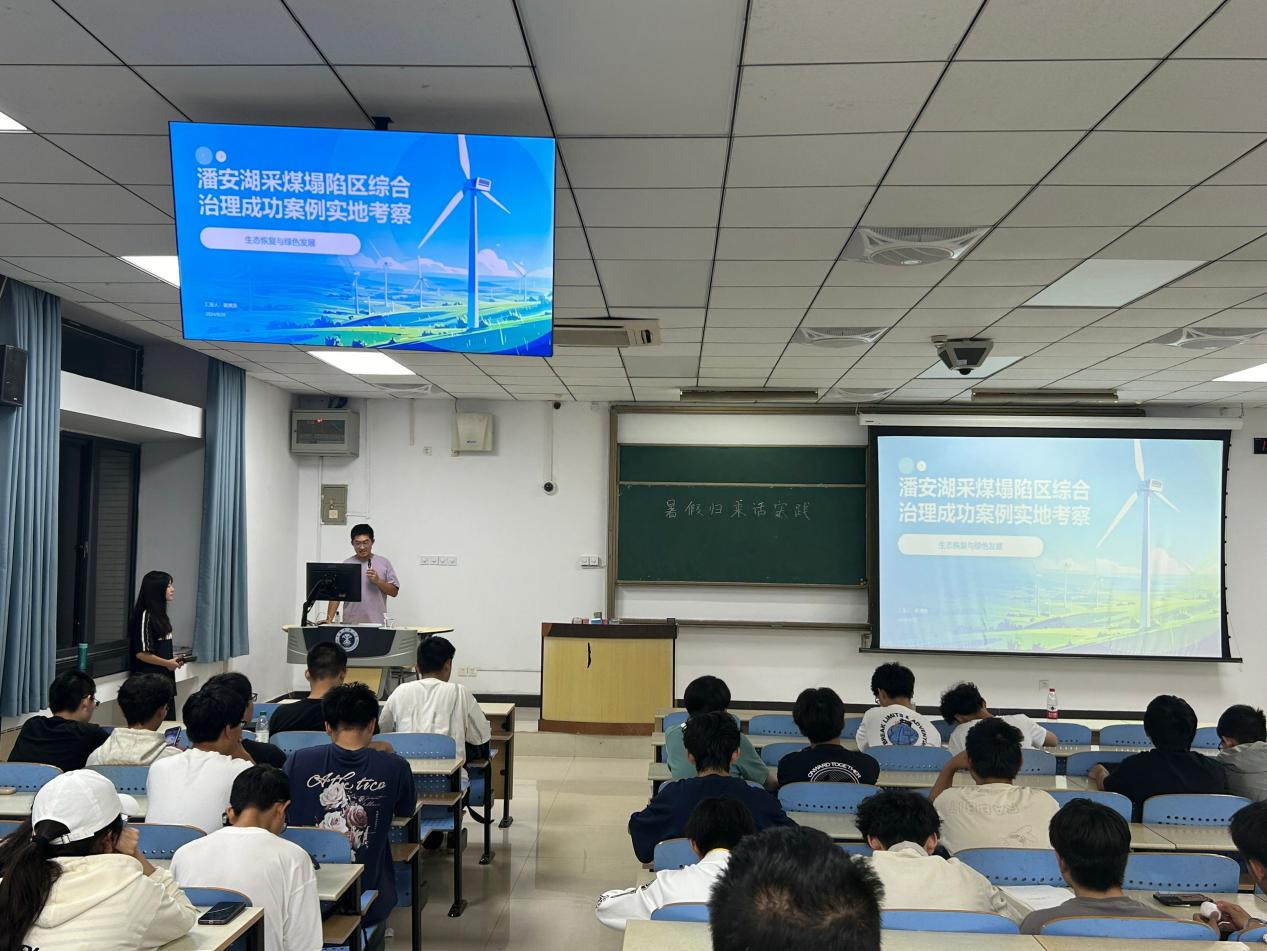来自遥感二班的两位同学分享了他们的社会实践经历,在过程中同学们深有感触。其中,遥感2 班参与学生支教活动的同学分享了自己在实践过程中与孩子们的互动过程。他表示此次社会实践活动不仅能提高个人际交往能力和摄影技能,拓展学科知识,积累教学辅导的能力,同时也深刻体会到“爱心”以及正确的价值观在学生成长中的关键作用。除此之外,参与“潘安湖采煤塌陷区综合治理成功案例的实地考察”的同学积极分享自己对于潘安湖采煤塌陷区通过生态修复,成功转型为国家湿地公园,变为生态旅游热点的艰难过程的感悟。他认为这是“绿水青山就是金山银山”理念的淋漓呈现,深刻体会到生态保护与经济发展可以并行不悖。