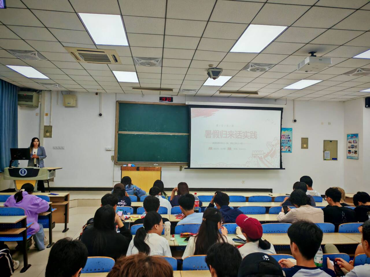 活动伊始,团支书就实践目的、实践内容、实践形式这三大部分进行了详细介绍,帮助同学们对社会实践有一个更为深刻的了解。在分享经验的环节,同学们踊跃发言。首先由马子然同学分享了自己的实践小分队,他们选择深入社会,开展推广普通话活动。孔明月同学走访历史遗迹,了解非物质文化遗产,学习参与文物修复工作。另外一部分同学选择了走进企业一线,吴磊同学和洪誉峰同学分别分享了他们在相关企业的社会实践经历,他们将理论与实践相结合,为未来职业发展奠定基础。活动最后,团支书针对同学们提出的问题展开了解释,并鼓励大家积极参与社会实践。