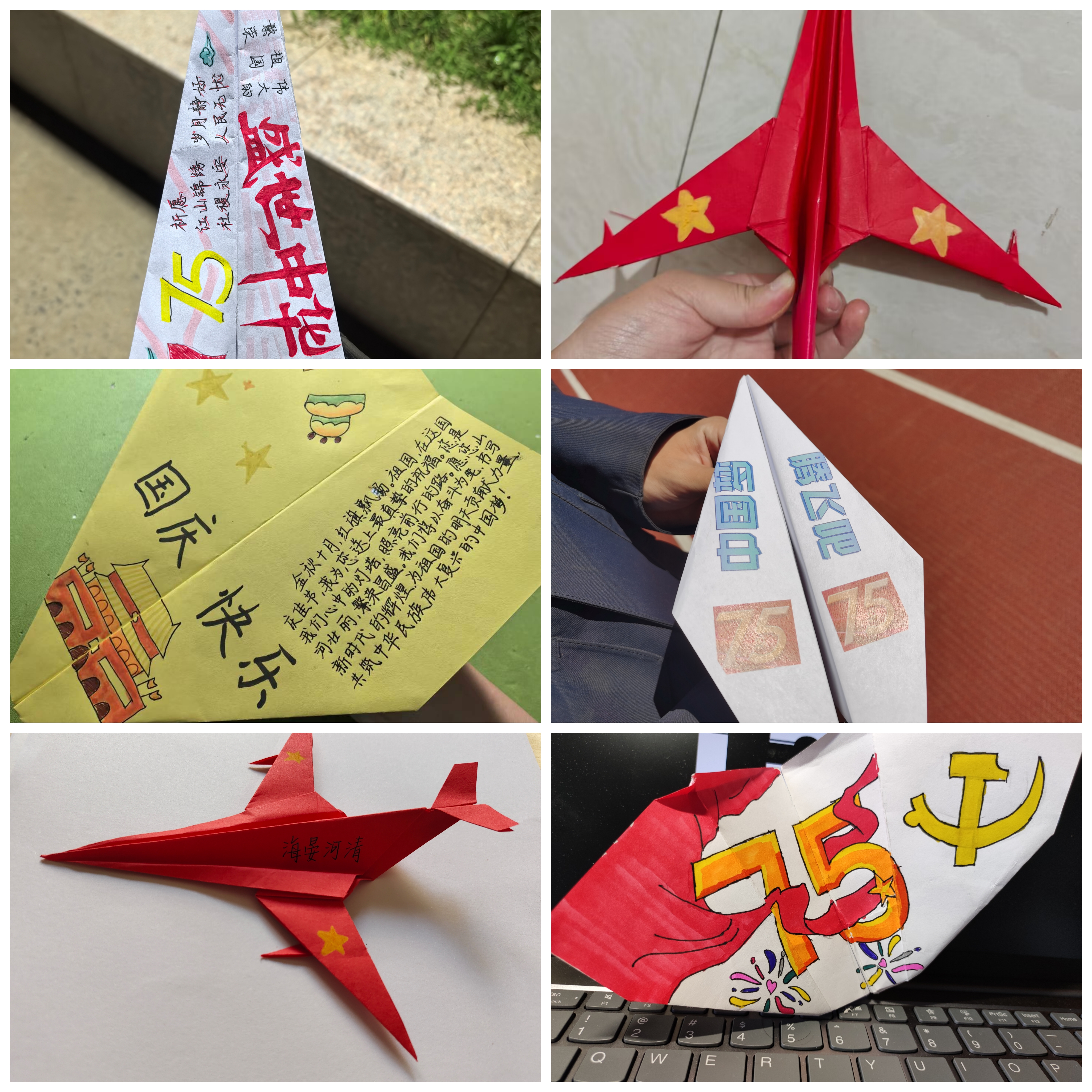 本次活动面向我院全体学生开展。学生国庆在家期间发挥想象,制作富有国庆特点的纸飞机,绘制国庆主题的图案,并录制放飞纸飞机的视频,配上对祖国母亲祝福的文案,最后由学生会办公室收集参与者的纸飞机照片与视频。