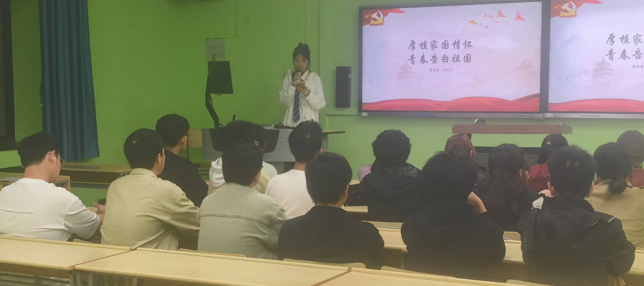 2024年10月18日晚七点,测绘四班召开了主题为“厚植家国情怀,青春告白祖国”的团日活动。活动伊始,伴随着庄严却又柔和的乐声,宋冰洁和卢远鹏同学以演讲的形式分别抒发了对祖国深切的热爱与赞美,对青年奋发有为的殷切期盼与呼唤;此后,蔡宇阳、周醒言和杨宛玉同学分别以ppt的形式,从党史、社会主义发展史和中华民族发展史,家国情怀的内涵与意义,如何厚植家国情怀,青春力量与担当等多个方面分享了自己的观点与思考。本次活动成功地增进了同学们的爱国主义情怀,点燃了同学们发奋建设祖国的热情,让同学们将个人理想融入国家的发展方向,在为国家和人民的不断奉献中书写人生。