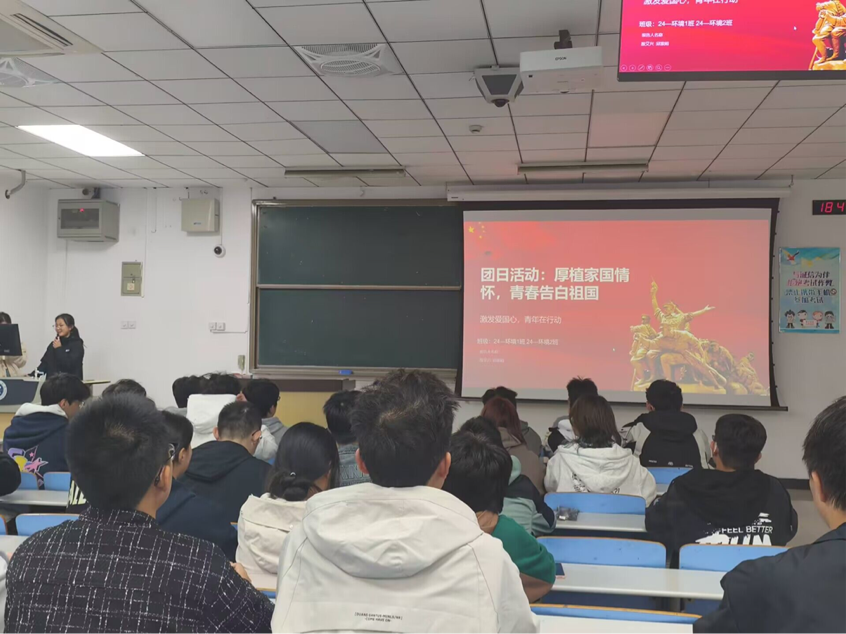 根据2024年基层团组织主题团日活动指引,我院积极开展"厚植家国情怀,青春告白祖国"主题团课,2024年10月22日,环境科学与工程类24-1和24-2班在博1-B203开展主题团日活动。