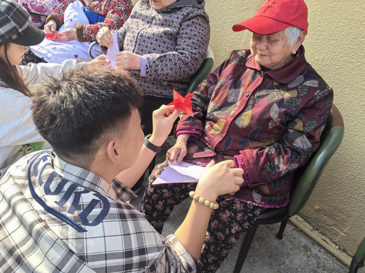 早晨八点半,同学们抵达活动现场并有序展开活动。活动共分四个部分。先是为老人发放班级集体购买的牛奶和面包;接着许邦煌同学和魏伯印同学分别演唱爱国歌曲,老人们鼓掌,有的还跟着哼唱;随后负责人分发剪刀,同学们教老人剪纸或折纸,边做手工边聊天互动,并将手工作品送给老人留念;最后,同学们献上热情的云南打跳舞。活动结束后,同学们收拾场地后与老人道别。