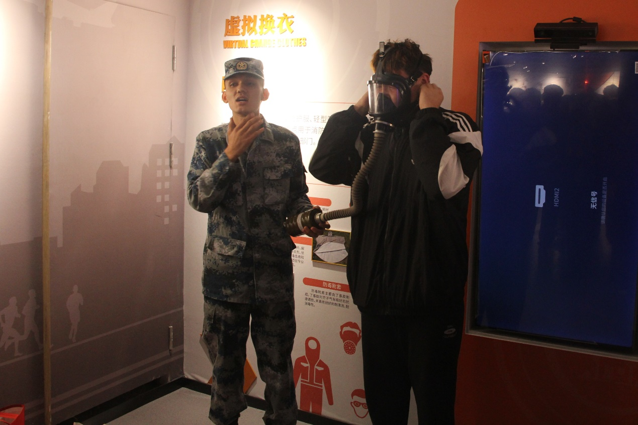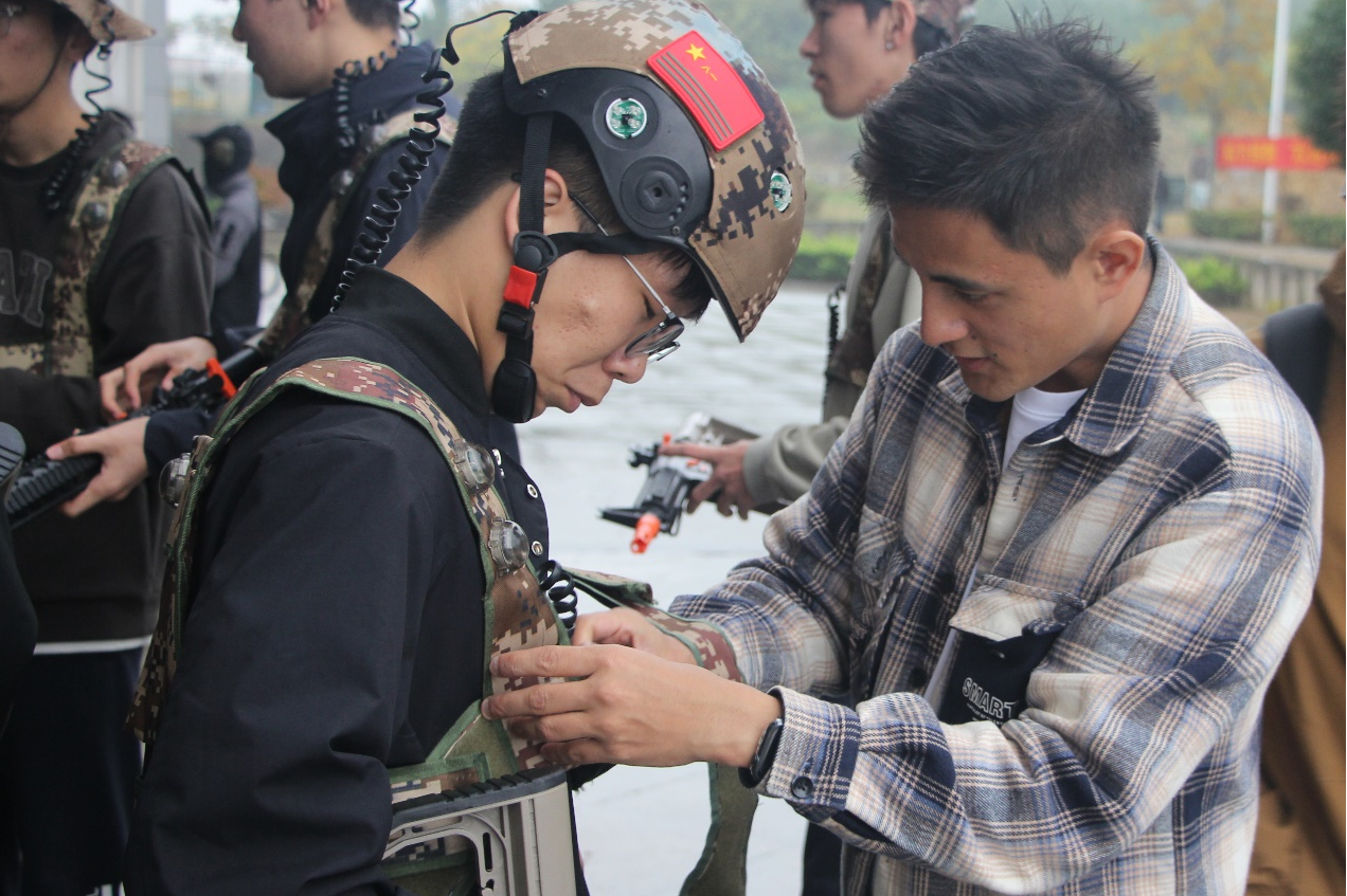 活动伊始,艾科拜尔详细介绍本次军事拓展活动的主要内容。随后,在人防体验馆中,我校国防教育协会退伍学生阿热帕提江传授防空警报的辨认、火灾形式及灭火方法、民防工程的主要地点等相关知识,并亲自示范如何正确佩戴防毒面具。最后,同学们体验了真人CS模拟射击,身着迷彩,穿梭在堡垒与掩体间,在紧张刺激的氛围中,感受了作战时的战术与勇气。