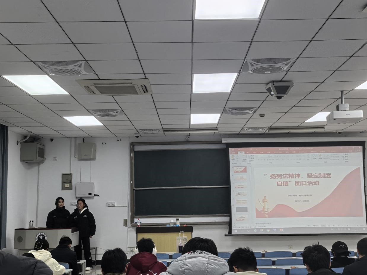 为了增强同学们对宪法精神的理解以及对我国制度的认同感,2024年12月16日下午六时五十分,我院环境科学与工程类24-1班和24-2班在博1-B501开展“弘扬宪法精神 坚定制度自信”主题团日活动。