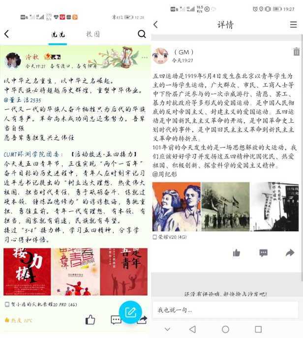 五四又至,为了倡导同学们拼搏进取,传承五四精神,树立正确的社会主义核心价值观,我院测绘类19-10班团支部于5月4日在线上进行了“接过五四接力棒,学习五四精神”的主题活动。