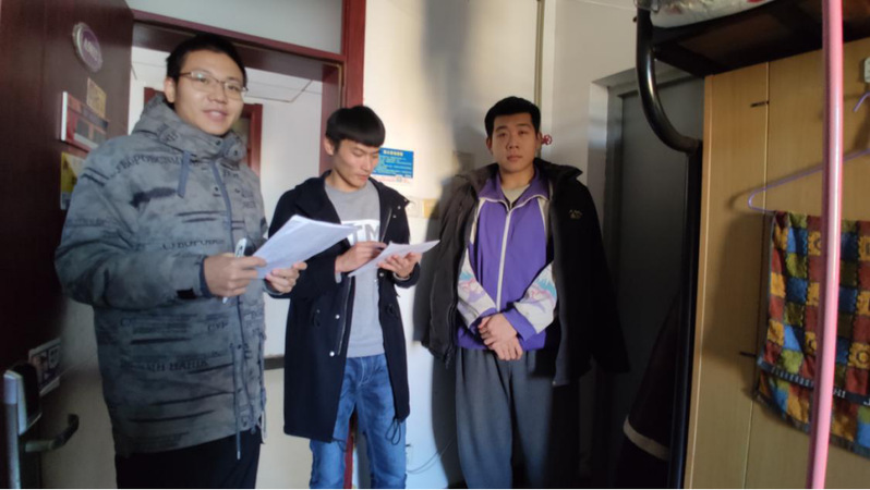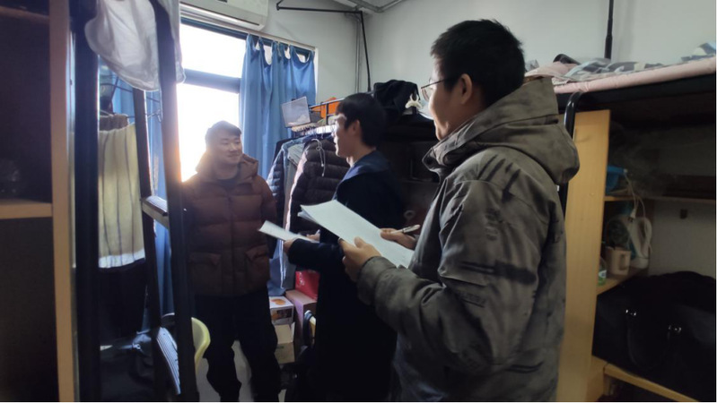 为了解我院研究生的学习生活状态,并检查其寝室是否存在使用违规电器等现象,12月22日及27日,我院研会组织开展研究生宿舍查寝活动。在研究生辅导员陆雨的带领下,研会副主席陶勇、研会生活部部长臧金玉等人参与此次活动。此次查寝共走访38个宿舍,并与14个宿舍的同学进行深入交流。