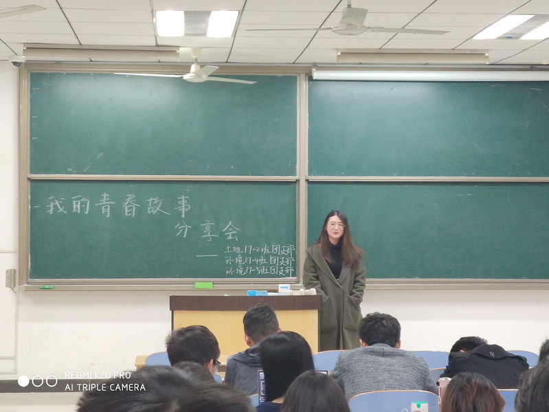 11月12日,我院土地17-2班、环境17-4班、环境17-5班于博四A206共同举办“我的青春故事分享会”,分享青春故事,展现青年风采。活动邀请到了我院18级辅导员杨琪琪老师前来分享自己的青春故事,通过杨琪琪老师的热情分享,同学们都受益匪浅。