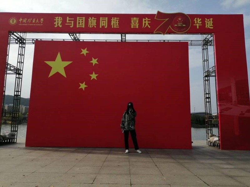 测绘19-9班的同学与国旗合影