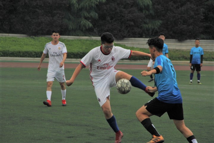 比赛开始前,双方队员都早早地来到第三运动场,并进行了充分的热身活动。下午4时,随着主裁判的一声哨响,比赛正式开始。虽然由我院率先发球,但队员未能快速进入状态,而这也导致我院足球队未能占据太大优势,比赛节奏逐渐被对方掌控。而在比赛进行中,天气逐渐下起小雨,队员们也逐步找回了状态,使比赛陷入焦灼。最终,上半场比赛双方都未能有所建树。