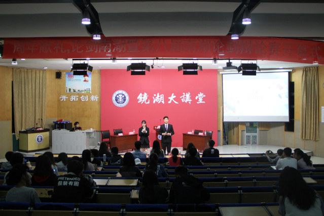 为建设我校优良学风,培养同学们的思考辨析能力和语言表达能力,助力110周年校庆,4月19日晚7时,我校第八届南湖论剑辩论赛开幕式在镜湖大讲堂顺利举行,此次活动由中国矿业大学委员会,中国矿业大学社团联合会主办,我院等多院承办。环境学院辅导员杨琪琪,电力学院辅导员冯硕,土木学院辅导员兰若文以及中国矿业大学思辨社主席赵树言,管理学院社联主席叶乐川受邀出席了本次活动。