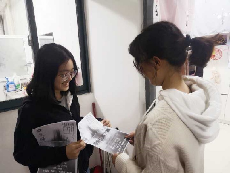 晚上9:00,我院提案委员会成员于桃五楼下集合,并由相关负责人对本次活动主要内容及注意事项进行简单讲解,随后,各成员进入宿舍楼对同学们进行宣传。宣传人员首先就大赛的内容和背景对同学们做了简单的介绍。在同学们对大赛有一定了解后,宣传人员再进一步对活动的主题及参赛要求进行详细讲解。宣传人员诙谐的话语,清晰的讲解,充分调动了同学们参与大赛的热情。此后,宣传人员对有兴趣的同学进行了意向登记及宣传单的发放。