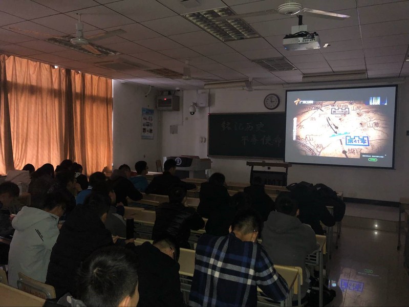 活动伊始,班长曹仁龙结合ppt为大家讲解了“一二.九”运动的事件背景和过程,随后组织同学们观看纪录片《大抗战之一二九运动》和《大抗战之徐州会战》,两部纪录片反映了抗日战争期间中国学生及军民抗击日寇的坚定决心和不畏牺牲的爱国精神。同学们认真观看,被片中一段段刻骨铭心的历史事件和一个个感人的英雄事迹所吸引。观看结束后,同学们互相交流了自己的感受。