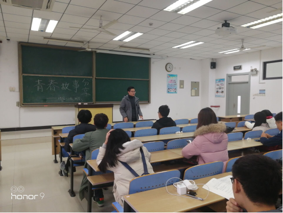本次分享会荣幸地邀请到了陆雨老师给我们分享了他的青春故事。首先陆老师跟我们分享了他的两段感情经历,虽然这两段感情都是以失败为结尾,但给我们在场的大学生们很大的启发和感触。陆老师对我们是否与异性交往持保留态度,而是强调我们当代大学生应该合理把握学习与谈恋爱之前的平衡,以做到像陆老师口中的“学霸情侣为目标,互相促进、互相帮助、共同进步。除此之外,陆老师还与我们分享了他们寝室中的各种故事,并给我们指明了如何与室友做到和睦共处。最后,陆老师针对同学提出的如何扩充朋友圈这一问题给出了答案,他告诉我们不要刻意地去追求扩展自己的朋友圈——无为而治,顺水推舟,这样才是最好的。
