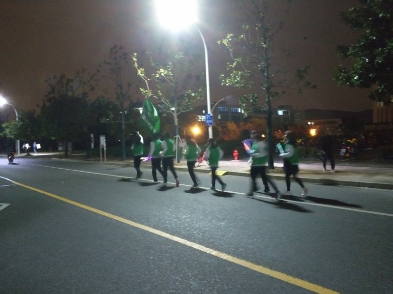 下午6时,在活动负责人李加枝的组织带领下,各个学院参加者在青创广场集合,负责人向到场的同学们讲述的活动的流程和任务,他表示“活动的目的不仅是让环保意识深入人心,更是传播同学们对运动的热情”,随后,负责人向到场同学分发了荧光棒并带领大家做热身运动。热身完毕后,手举荧光棒的同学们就跟随着学院旗帜开始了夜跑,同学们在路上奔跑的身影和荧光棒的光芒在寒冬的夜晚形成了一道别样的风景,在奔跑的过程中部分同学表示“虽然11月的夜晚很冷,但是在同大家一起运动的过程中充满了激情和活力,完全感觉不到寒意”。在经过两个半小时的努力下,所有的参赛者都完成了夜跑,虽然大家都累的气喘吁吁,但是他们的脸上依然洋溢着笑容,并对自己能完成活动感到自豪。随后,在体育部部长占弋锋的组织下,同学们来到了指定的地点集合,他对本次参加活动中同学的表现做了总结,并希望同学们能一直坚持夜跑,保持锻炼身体。