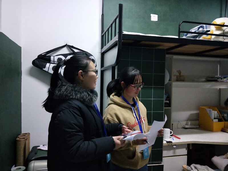晚9点,我院学生会生活部工作人员于桃苑5号楼下大厅集合,并开始分组对各宿舍进行检查评分。本次评分由宿舍文化、宿舍内务、宿舍安全以及宿舍装扮美观程度等不同因素组成。各干事先就宿舍总体装扮进行检查拍照,然后再对于寝室的清洁程度进行细致考察。除此之外,干事们还对宿舍设备进行了检查,考察宿舍是否有违禁物品,宿舍安全是否存在隐患。检查完毕后,各宿舍人员对宿舍装扮内涵进行了讲解。