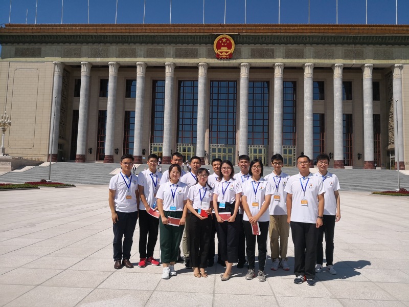 会议结束后,江苏省代表团,大学生世纪环保组织学生代表同中国矿业大学团委副书记与江苏省团委及其他获奖单位部分代表在人民大会堂门前进行合影留念。