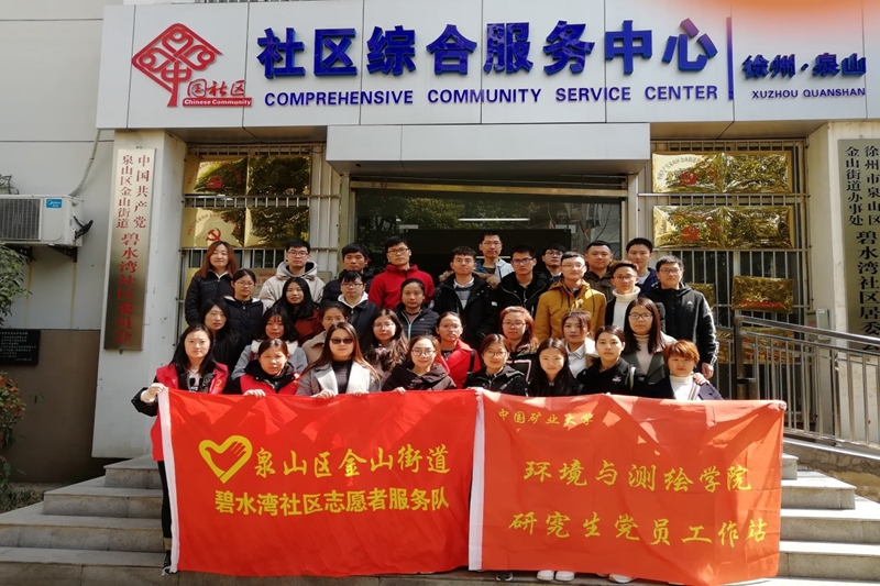 为深入学习宣传贯彻党的十九大精神以及习近平总书记关于志愿服务系列重要批示精神,积极培育和践行社会主义核心价值观,引导党员深入社会、了解社会、服务社会,向社会展现共产党员的先锋模范作用,同时为进一步传承、弘扬雷锋精神和志愿服务精神,喜迎改革开放40周年。环测硕士党支部以“雷锋月”为契机,在支部书记的带领下于2018年3月16日组织本支部和学院其他党支部党员进入碧水湾社区开展主题党日活动暨“学习贯彻十九大•青春志愿我先行”。