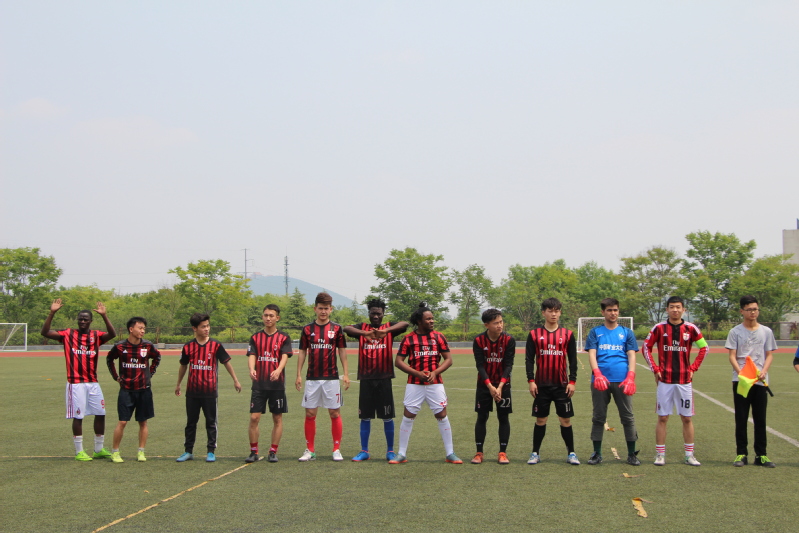 随着裁判的一声哨响,两支球队展开了激烈的角逐。我院球员凭借巧妙的攻略、熟练的脚法、默契的配合以及外援的出色发挥,多次突破信控学院的防线,但也错失许多机会。比赛进行到20分钟,我院18号中场抢断后带球连续突破对方防守球员,最终打破僵局,破门得分。此后我队又打出几次精彩的配合,上半场以3:0领先信控学院。中场休息后,信控学院进行了人员调配及战术调整,比赛进入下半场的激烈酣战。场上身着黑红球衣的我院的队员们激情澎湃,场下观众席上我院同学们为环测队员们呐喊助威。起初信控队的加强防守策略效果显著,一度使我院难以攻破防线,但队员们坚持不懈,顽强拼搏,越战越勇,最终由外援马提诺在比赛即将结束时再下一城。全场比分4:0,环测战胜信控迎来首胜。