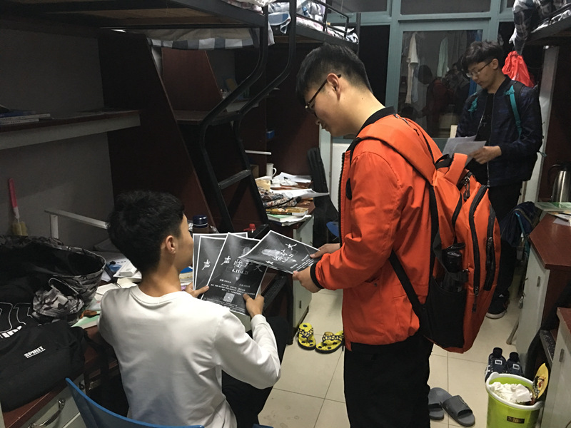 为促进学生积极展现自我,鼓励学生发挥其能力,36365路检测中心学生会办公室鼎力支持共青团中国矿业大学数学学院委员会及中国矿业大学数学学院学生会办公室举办的“声临矿大”活动,为增加学生对本次活动的认识,我院学生会工作人员于四月十日晚上九时,前往桃苑五号楼,开展扫楼宣传活动。