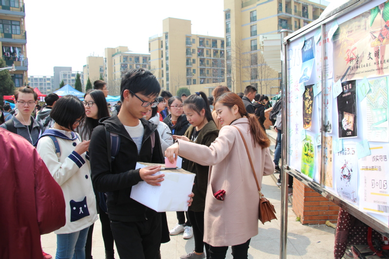 经过了前期各个学院的充分准备和同学们的积极参与,此次活动征集了大量的海报设计作品。活动开始前,负责学院的学生会生活部同学将所有参赛作品张贴在展览板上供同学们观赏,而每位参与投票的同学都有两票来投给自己所青睐的作品。本次线下投票活动与微信公众平台的投票活动相结合,然后按照三比一的比例进行汇总,最后通过投票数来排名赋分,而统计完成绩之后的各组,排名前50%的进入最终决赛。
