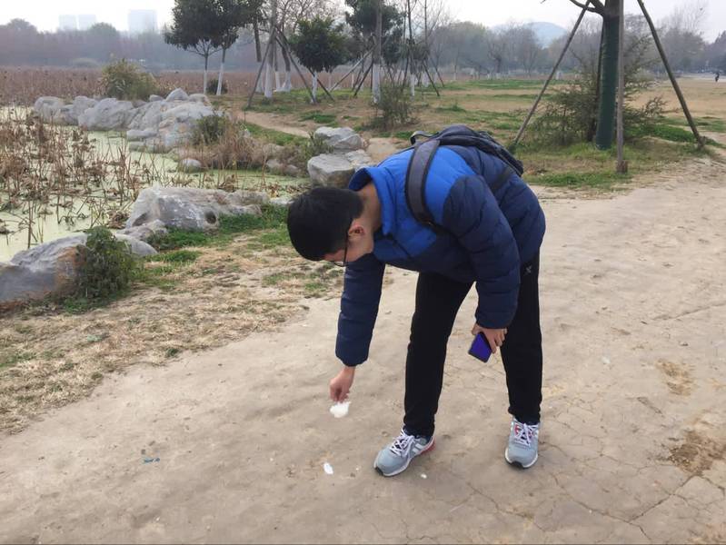 早上8点,同学们在青创广场集合完毕,乘公交车抵达金山村站,后步行至云龙湖。随后,同学们自由分组,选定小组负责区域,活动正式开始。
