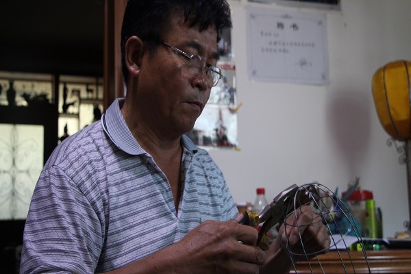 传统花灯,民间手工艺人用灵巧的双手缔造出的视觉艺术,中国历代的花灯,品种繁多,制作十分讲究,灯光流转间,韵味十足。时代变迁,传统花灯的生存空间日益缩小,花灯十里正迢迢的景象隐匿在诗词中难寻踪影。一盏两盏传统花灯,零星寂寥的灯火,有人仍在坚守。对他而言,花灯不仅仅是供人观赏的作品,也是对传统的坚守、对美和艺术的热爱与追求,他,就是徐州花灯首席传承人曹开君老师。 从七月二十八号到八月四号,中国矿业大学徐州非遗纪录片拍摄团队在曹老师的家中进行了为期八天的拍摄。参观了曹老师制作金鱼花灯的全过程,并采访了曹老师和其爱人一些生活和工作上的问题。 作为徐州花灯的首席继承人,曹开君老师秉承着"精益求精"的精神,对每一个自己亲手制作的花灯,都尽心尽力,力求做到最好。不仅仅将徐州花灯制造手艺保存并流传了下来,还在此基础上对于"花灯焊造"、"花灯设计"进行了创新。我们在现场观摩了曹老师制作一盏鲤鱼花灯的全过程:几根细细长长的铁丝,几块普普通通的绸布,在曹老师和其爱人的共同努力下,眨眼间便变成了一条活灵活现的美丽金鱼。从“立意”到“制作骨架”,再到“布灯”,最后的“撒金粉”,曹老师显得游刃有余,一边对我们悉心讲解其中重点,一边操作着工具。在制作过程中,曹老师多次被焊具烫伤,并表示这是家常便饭。但这点挫折并不会阻挡曹老师在艺术传承的这条路上继续前行,正如戴维所说:“挫折是倾覆弱者生活之舟的波涛,是锤炼强者钢铁意志的熔炉。”使我们备受感动,深受感染的不仅仅是因为老师的高超技艺,还有老师的状态,沉稳亲善,从容饱满,满满的生机,对花灯充满深厚的情感与热爱。 曹开君老师这样说到:"在徐州,花灯一般是小孩子们在过元宵节的时候玩的。每一个花灯的质量是否良好,外观是否美观,都决定了一个孩子能否过一个快乐的元宵节,所以说每一次制造花灯,我都尽我所能做到最好。"也许正是曹老师十几年如一日的对于花灯的坚持,使得曹老师的花灯与其他人相比,显得与众不同。 制作完金鱼花灯后,我们采访了曹老师及其爱人一些关于生活与工作上的问题。曹老师坦言,他和他的爱人常常在制作花灯时会有意见上的不统一,但也正是这种思维上的碰撞,意见的折中,才让他制作的花灯越来越精美。 在采访过程中,曹老师多次提及现今花灯发展步履维艰。多日劳动的成果在展览上被人损坏的事情不止一次发生,这类情况让他非常痛心,但他依旧对花灯的未来充满期待,“我一直在对我的花灯进行改造,让它更符合现代趋势。我希望它能一直发展下去。” 在灯火阑珊处,曹老师怀揣着美梦,独倚明月高楼,望断天涯路。他说热爱的东西他放不下,老祖宗留下来的东西,他不能丢。他时时刻刻的渴望着让自己的灵感,智慧,技艺凝结成一件件能流传永世的作品,将自己存在过的蛛丝马迹坚强不屈的留在作品之中。以这样的方式,即使肉体死去,他们的生命依旧会在作品之中生生不息的绵延。这样的信念体现在曹老师身上,化为了轻轻地一句:为这个世界留点儿什么。 “灯烧陆海,人踏春阳”。曾经还是个孩子的曹老师就曾流连于美丽的花灯之间忘却归家,年年岁岁灯相似,岁岁年年人不同。春秋几度,看花灯的人最后变成了做花灯的人。几十年默默无闻的坚守,忍受着艰苦与寂寞,忍受着轻视与不公,从来没有想过放弃。这个心灵手巧的匠人,不愿放弃的犟人,最初不过是一个喜欢了就一直做下去的普通人。 通讯员:张志恒