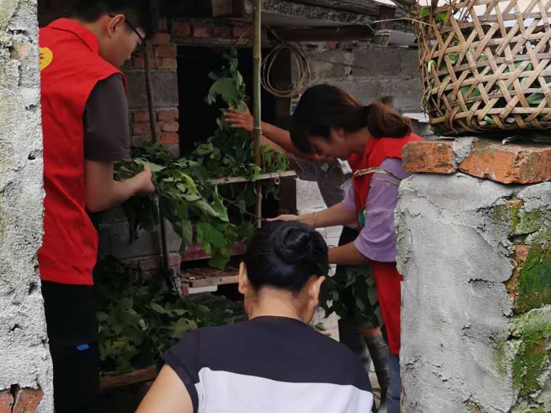 实践团成员前往石洼组的夏士如家中开展精准扶贫工作。夏士如与他的妻子二人均患有肢体二级残疾。实践团成员帮助两位老人修葺房屋、捋羊叶、喂羊,并与他们聊天。两位老人表示虽然生活艰辛,却一直勤劳乐观,渴望可以用自己的双手创造幸福,不给社会和国家添麻烦。夏士如老人勤劳且充满智慧,养羊技术高超,在村里远近闻名。“养羊得看夏士如”,一句玩笑话道出村民对他养羊技术的肯定。说到这句话时,他却谦虚地说:“我只是割割羊草,捋捋羊叶,没什么别的本领。”两位老人说他们下一步打算扩大养羊规模,买一台打料机,改善自家生活的同时,也尽自己所能去帮助村里其他贫困户。实践团成员们被夏士如一家身残志坚、勤奋自强的精神所深深鼓舞。