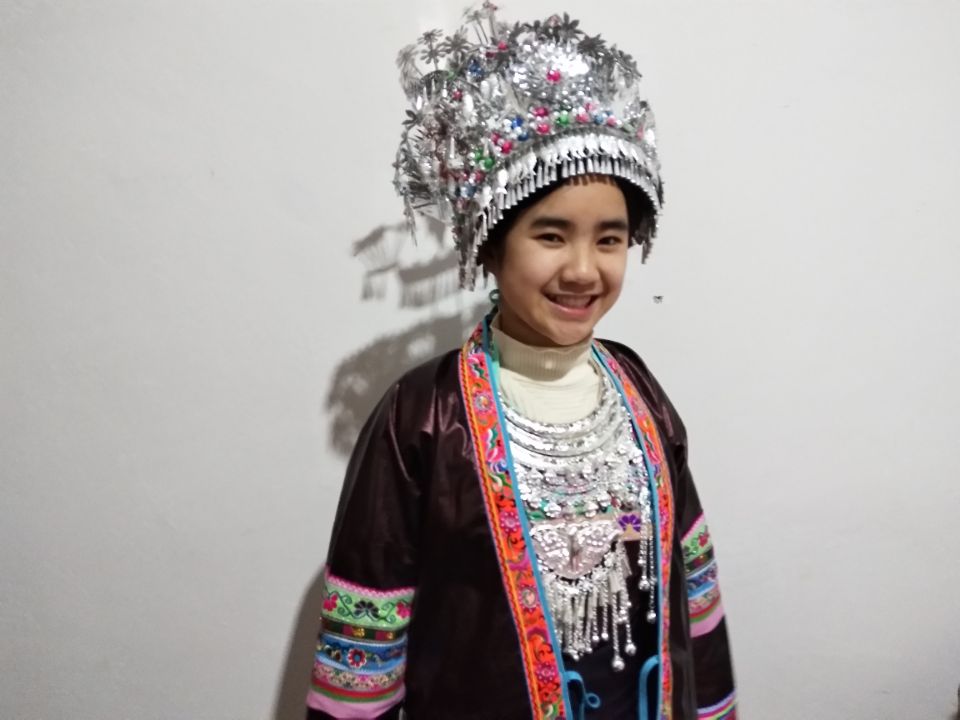 实践团队体验侗族服饰