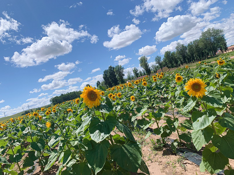 实践之始,丁淑芸路经内蒙古“一带一路”纪念山壁。通过当地居民了解到恢弘壮阔的雕刻印证着:经过多年发展呼和浩特市已初步融入“一带一路”。当地居民还相信在不久的将来,内蒙古自治区会迎来更加高速度、高质量的发展!之后,实践成员抵达了希拉穆仁草原达尔罕茂明安联合旗,跟随当地居民参观了蒙古包部落、牛羊马养殖场以及向日葵和马铃薯种植产业园,并亲眼目睹了诗句“风吹草低见牛羊”的绝美风光——蓝蓝的天空之中点缀着朵朵白云,碧绿的草地与澄净的天空衔成一副迷人画卷,牛羊成群地悠闲地享受着这片土地上的宁静祥和。