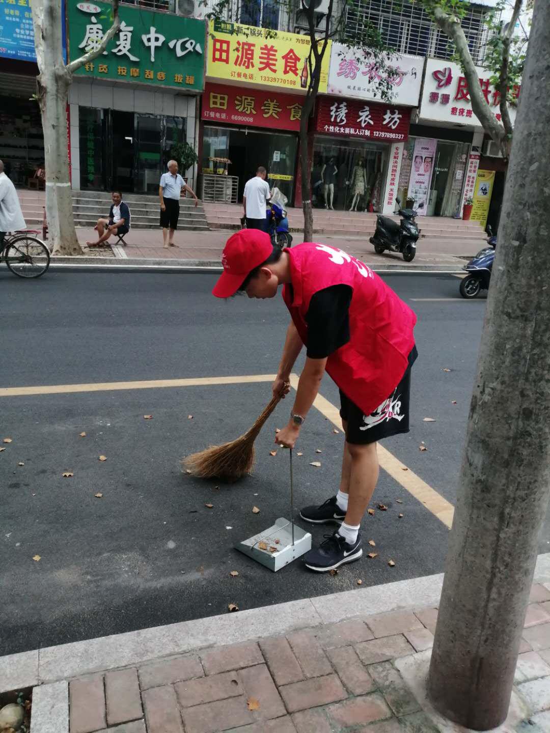 13号上午,施义初与志愿者们抵达现场时,看到路面堆积的树叶与随地扔的生活垃圾严重影响当地居民的绿色生活环境,与创建及评选卫生文明城市。随后,施义初与志愿者们纷纷拿起扫把和垃圾桶,开始清理路面卫生,打扫堆积的树叶。志愿者们不辞辛苦,积极主动为创建文明城市贡献出自己的一份力量。施义初表示,只有自己参与路面清洁中去,才能感受到平时环卫工人每天坚持打扫的辛苦,才能自发的保护公共环境卫生。