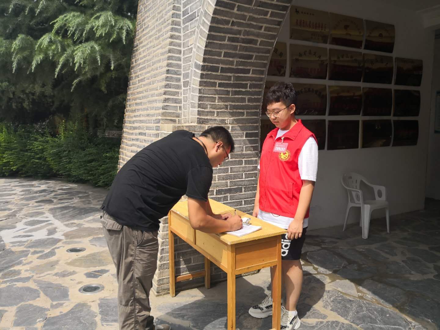 王泽昊协助游客进行登记