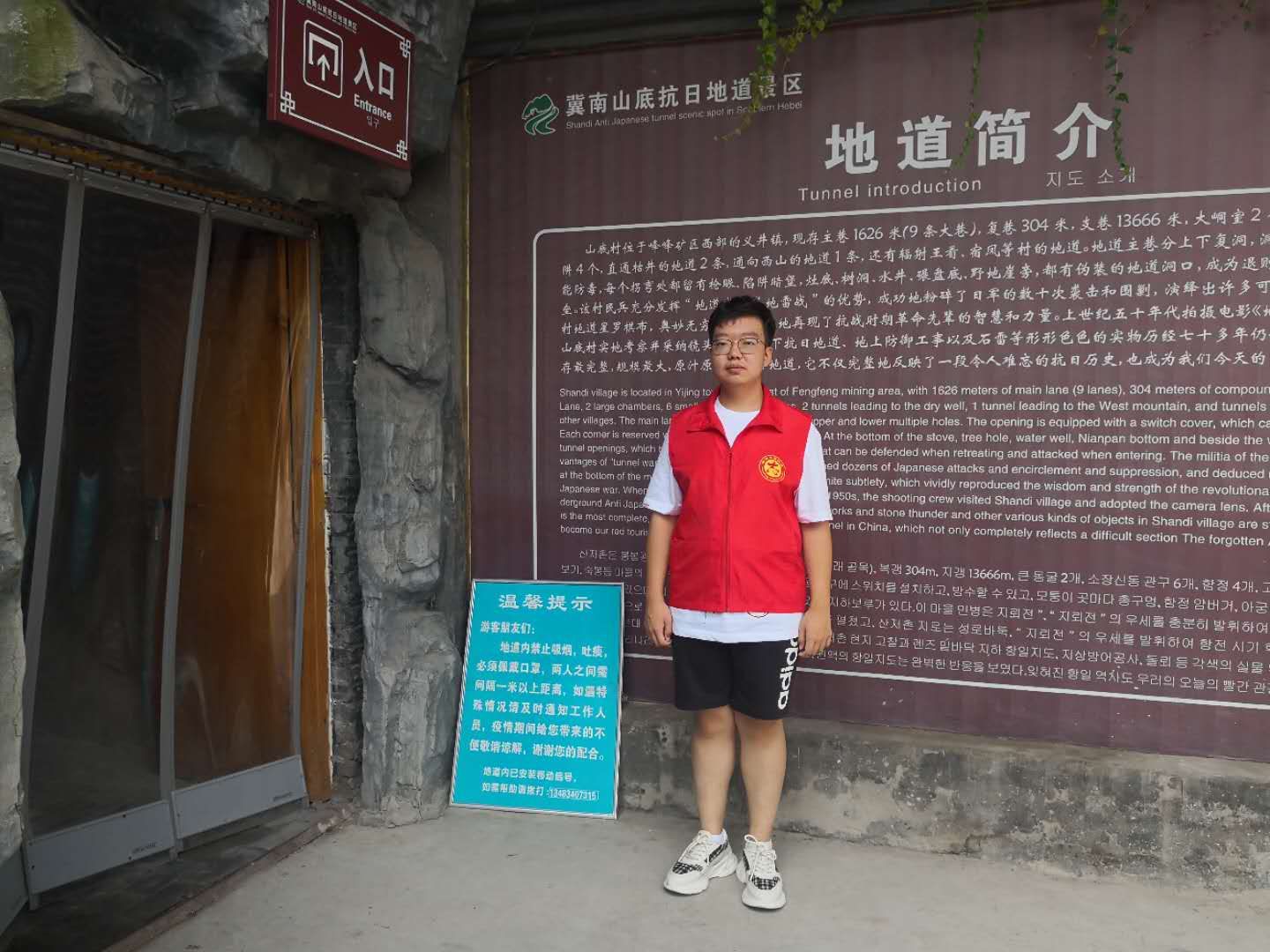 为响应号召助力家乡旅游景区疫情后复工复产工作的推进,并深入了解旅游景区的日常防疫和建设工作,我院地理信息科学2019级1班王泽昊于8月23日,前往邯郸市山底村抗日地道战遗址景区,开展助力疫情复工复产社会实践工作。
