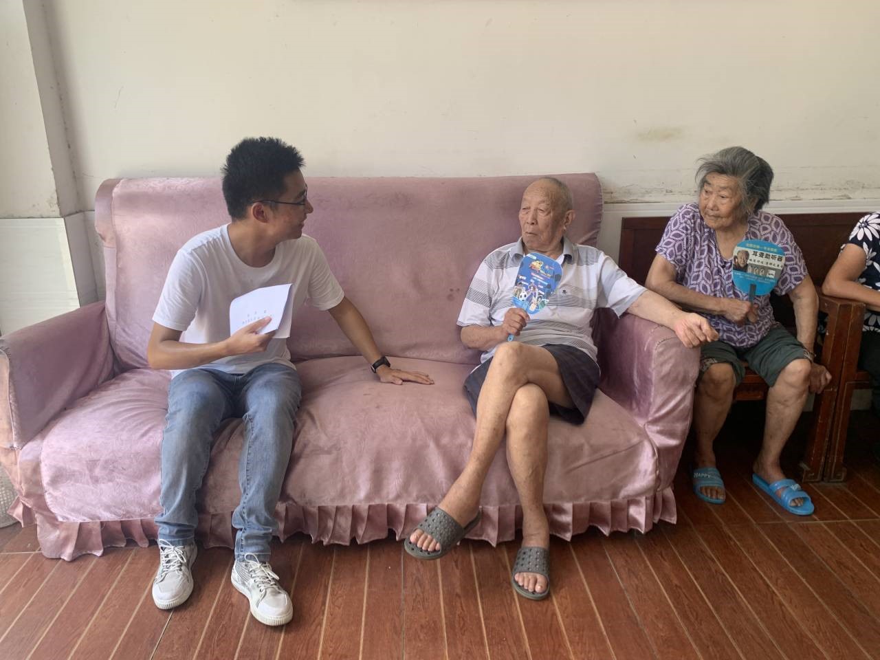 志愿者们和老人们聊天
