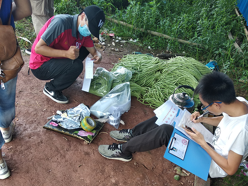 7月27日至8月7日,汤少天前往八步区农产品质量安全检测站进行实习工作,为其两周。本次实践,汤少天同学的工作以协助下乡采样与实验室检验工作为主,在下乡时的工作包括协助上级检验员联系农户,对蔬菜进行随机取样,协助填写采样信息表。在实验室时的工作包括对采样的果蔬进行粉碎打样,对样品进行有机分离与萃取的预处理。实践期间,实践人员踏实肯干,乐意下基层,深入农产品生产基地采样,回到实验室后积极配合,协助做好样品前处理工作,得到了检测站站长的肯定。