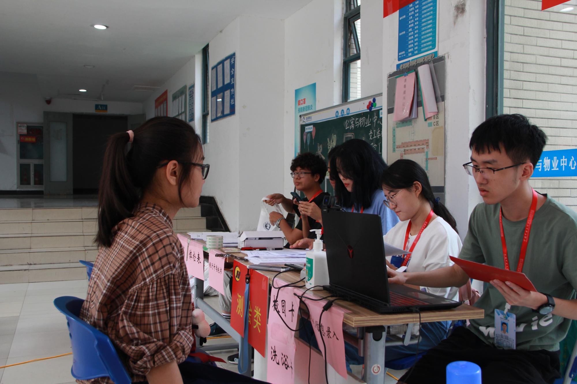 工作人员帮助新生办理入学手续