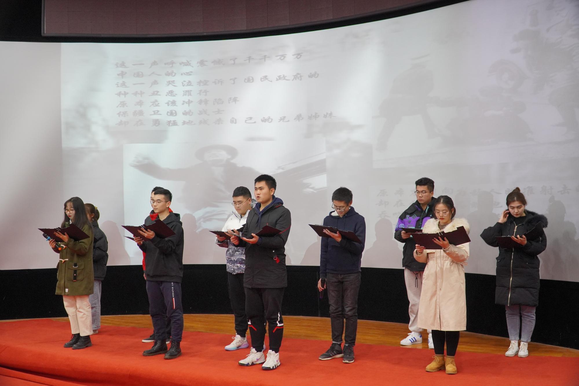 各班级的朗诵与表演穿插进行,以一种新颖的表演形式生动展现出同学们对“12.9”的理解,更展现出当代大学生的风采和深深的爱国之情。首先出场的是20级环境科学与工程4班。同学们身着统一着装,排好队列,在指挥员的带领下深情合唱一首《我和我的祖国》,表达出青年大学生深深的爱国情,展现出班级积极向上的精神风貌和团结一致的班级凝聚力。随后,有《我爱你中国》《歌唱祖国》等一系列节目,充分表达了同学们的爱国情感,现场活动氛围浓厚。最后,比赛在评委老师与各班级负责人合影留念中顺利结束。