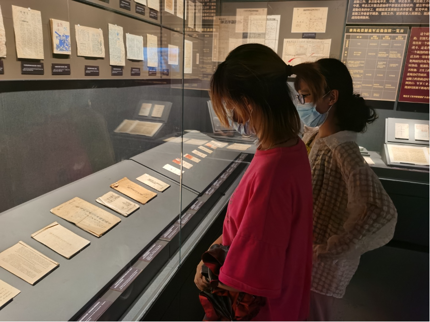 实践过程中,实践团参观了淮海战役纪念馆新馆。进入馆中,队员们被馆中肃穆庄严的氛围所感染,“人民的胜利”五个大字和金色的淮海战役壁画让队员们深受震撼。循着方向前进,队员们以淮海战役时间线为线索,游览了淮海战役期间的纸、布、铁、皮等质地的文物。在参观藏品的过程中,队员们认真阅读了展品旁呈列的文字,逐一听取了广播的介绍,硝烟弥漫,战火纷飞的战场如临其境,实践团成员深刻体会到了淮海战役革命岁月的艰苦。