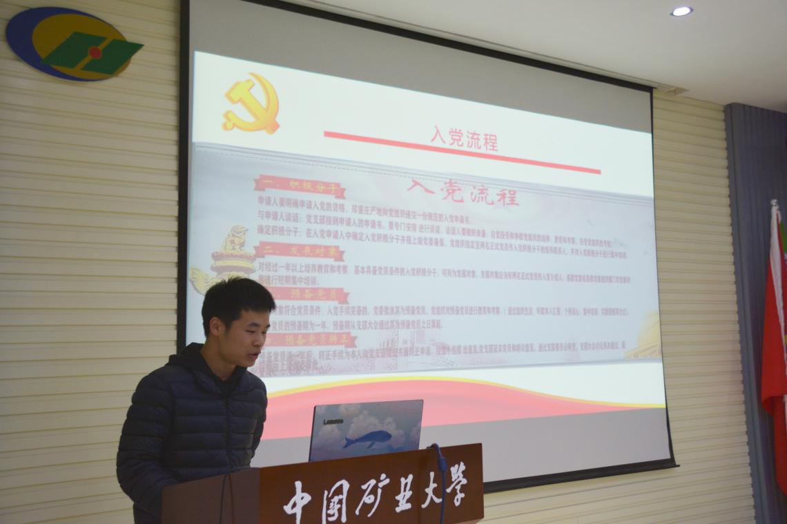 活动伊始,本科测绘党支部书记胡华东同志从入党动机、理论学习和展望三个方面向同学们分享了他的经验,为大家介绍了入党流程,并带领大家宣读了入党誓词。在讲解过程中,他强调全体同志要进一步端正入党动机,信念坚定,对党忠诚,全心全意为人民服务。
