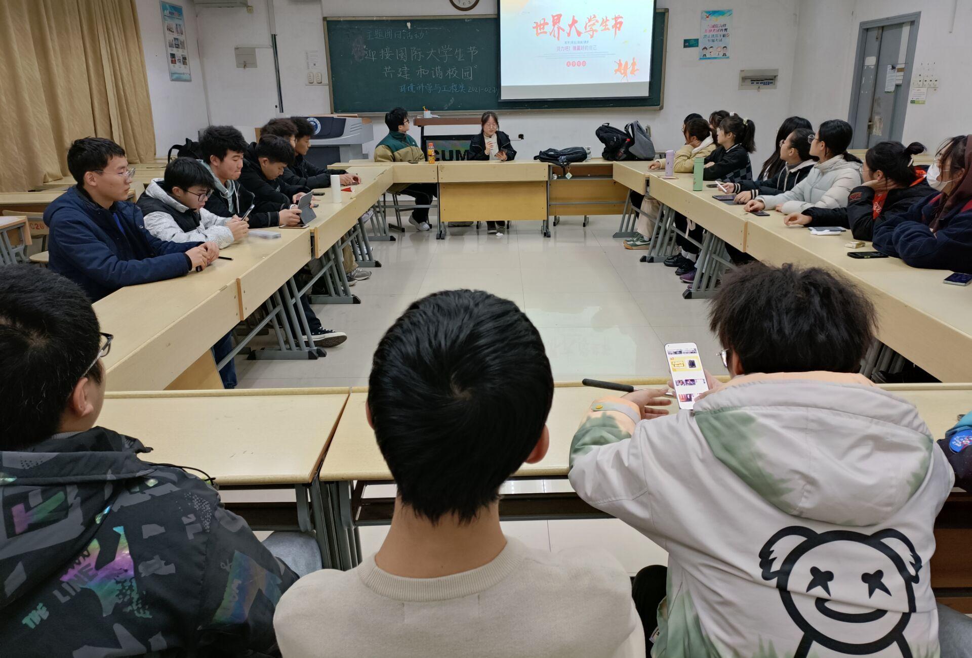 为号召同学们奋发学习,激发同学们的爱国情怀,同时带领同学们一同学习当代大学生的责任与担当精神,12月9日晚7时,我院环境类21-2班在博四C206举办“迎接国际大学生节、共建和谐校园”主题团日活动。