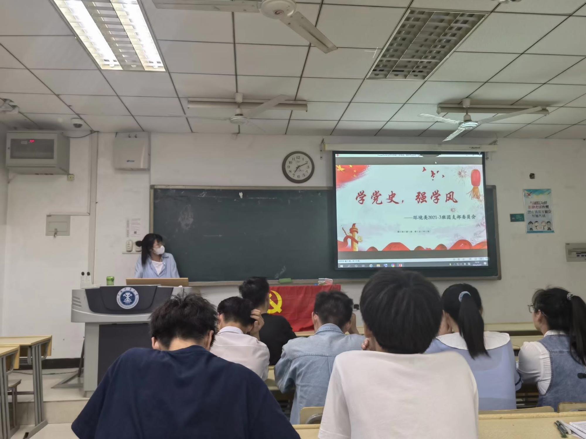 为了促进班级优良学风建设,进一步继承和发扬中国共产党的伟大精神,5月27日晚上七点,我院环境21-3班团支部在博学楼4C206教室开展了“学党史,强学风”团日活动。