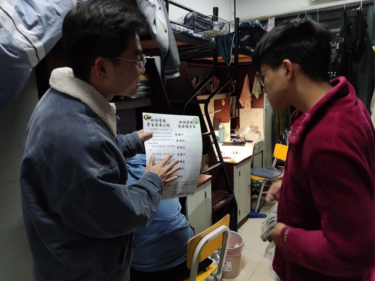 2021年12月12日晚8时许,我院学生干部开展宿舍文化建设系列活动,逐寝发放宿舍公约与宿舍小道具。