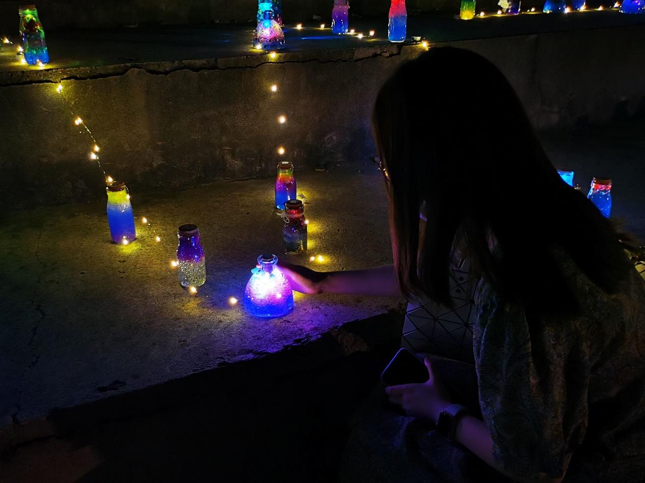 参赛的同学们使用统一发放的材料,融入个人思考与创新,加入生活中常见的装饰品,制作以蓝色为主题色,各具特色的星空瓶。作品以线上投票的形式进行评选,并提交实物进行展出。6月1日晚7时,36365路检测中心心理自助中心在第二运动场将收集到的105个星空瓶作品进行展出,将作品摆成“CUMT”字样,献礼矿大113周年校庆。活动结束后,部分星空瓶被捐赠到一食堂并摆放在书架处,为同学们在就餐期间提供更加温馨的环境,让“蓝色温度”真正传递到同学们心中。