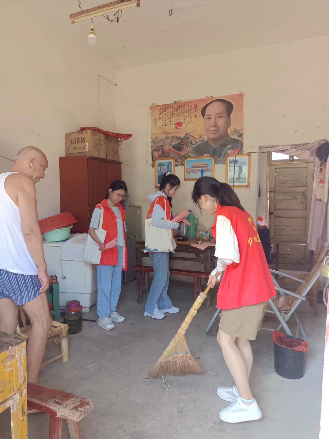 7月16日,团舒城县委举行了2022年大学生“返家乡”社会实践活动启动仪式,极大地鼓舞了志愿者们,增强了大家对志愿服务的信心和热情。7月17日下午,蔡婧婧同学跟随志愿者们去往了当地无保老人家中。按照《安徽省清洁村庄标准》要求,帮助老人对居住房屋进行了打扫与整理,改善老人的居住环境,同时细心询问老人们的相关需求,尽力去帮助老人们实现。