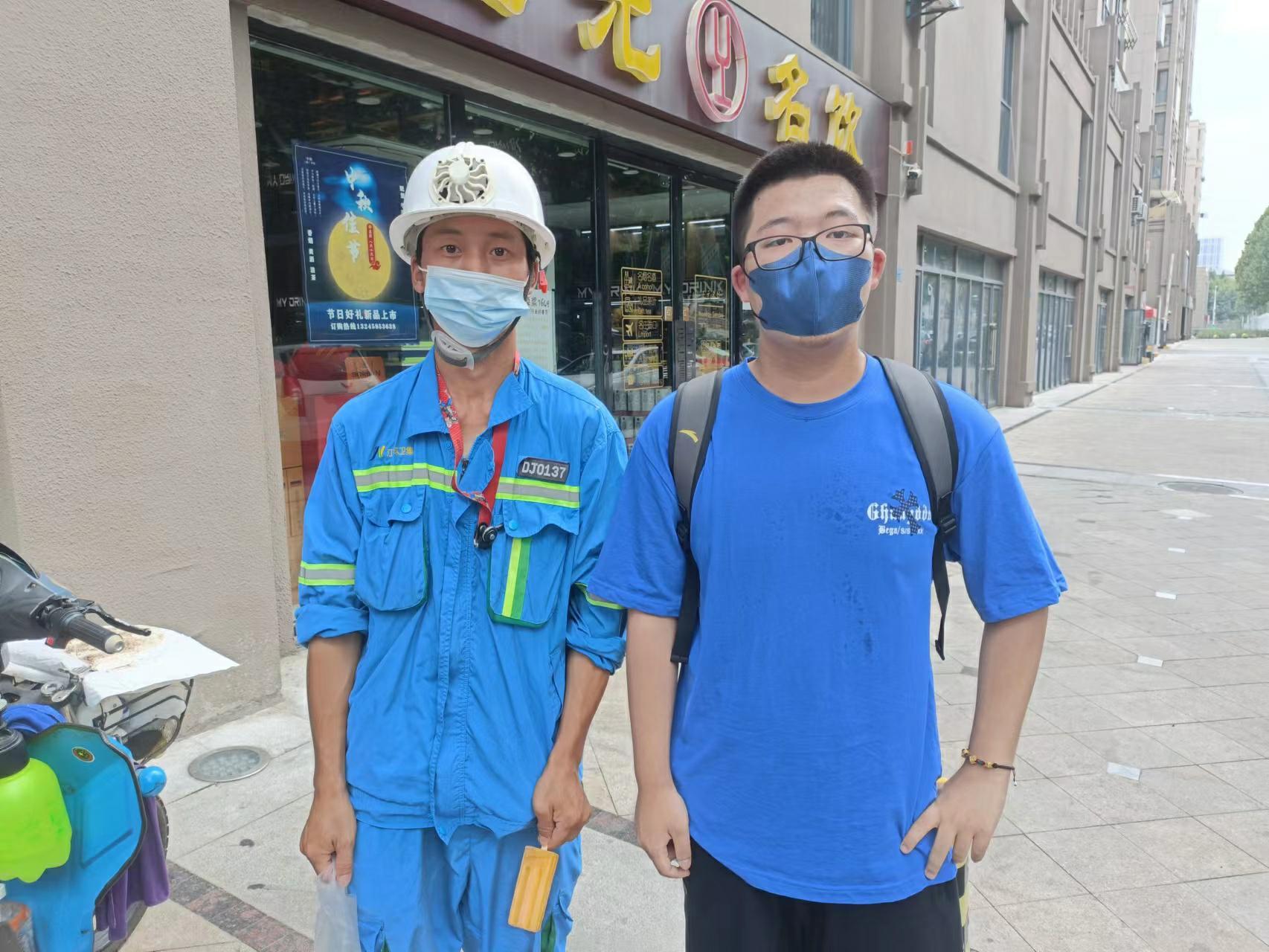 为了表达对在炎炎夏日依旧在为城市环境而努力工作的环卫工人的感谢,我院学子潘辰睿于8月5日同江苏省南京市江宁区晓里社区的志愿者们为当地环卫工人赠送礼物,表示感谢。