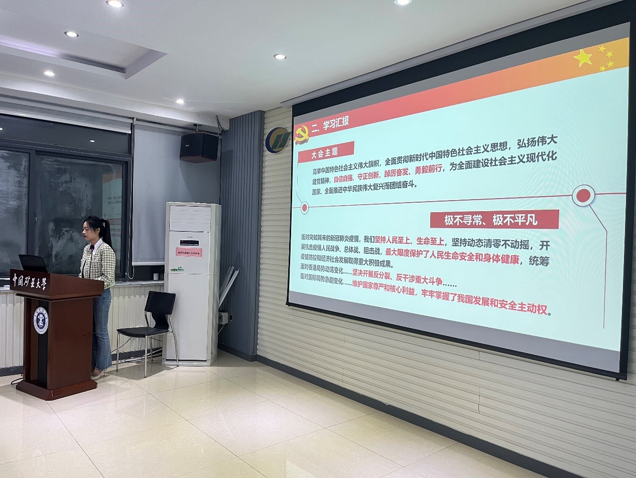 10月16日,中国共产党第二十次全国代表大会在北京隆重开幕。为深入学习中国共产党第二十次全国代表大会精神,厚植青年大学生爱党爱国爱社会主义情怀,铭记中国共产党的百年奋斗史,10月21日19点,我院研究生党员工作站在我院A512开展了“学习二十大,砥砺向未来”主题党日活动。我院党委副书记韩福顺,研究生辅导员杨政军老师及各研究生党支部书记出席本次党日活动。